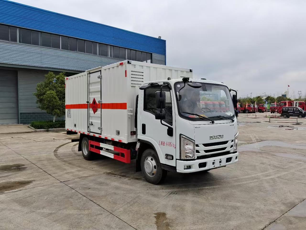 | 貨箱配置 | 廂體為雙層金屬骨架結(jié)構(gòu),外板采用冷軋鋼板,中間填充阻燃泡沫,內(nèi)飾為鋁板。底板為平板上鋪防靜電膠皮。廂內(nèi)兩側(cè)加裝固定貨物臥環(huán),門框帶防盜報警器,頂部帶煙霧報警器,廂體右側(cè)選裝側(cè)門,隨車配2個滅火器,危險標志牌,防火帽,危險品三角頂燈。(選裝瓦楞板貨箱) (尾部可選裝液壓升降尾板) | ||