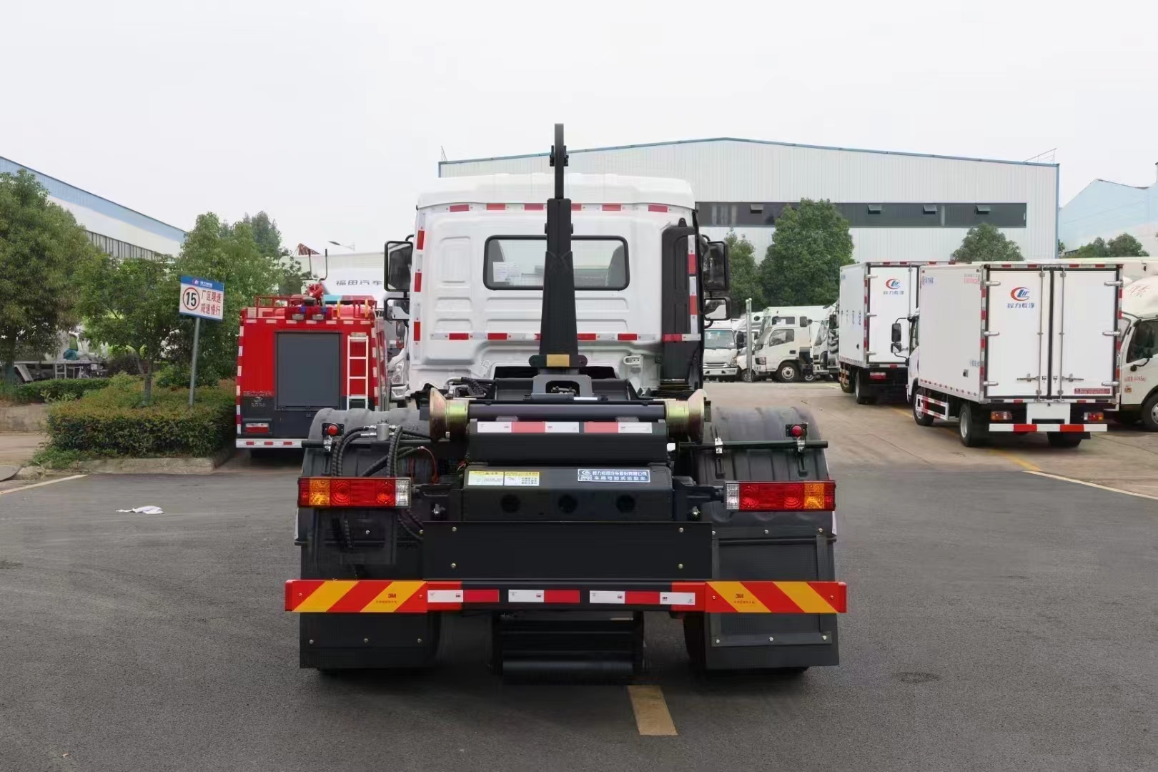 | 上裝配置 | 配套14-16方勾臂垃圾箱或移動(dòng)站,主勾臂由高強(qiáng)度板材制作,雙油缸控制,伸縮式主臂,加強(qiáng)型上裝結(jié)構(gòu),液壓支腿,橫向鎖緊,品牌多路閥,進(jìn)口柱塞泵,標(biāo)配室內(nèi)外操作(帶遙控),防誤操作,帶平衡閥,液壓鎖。 | ||