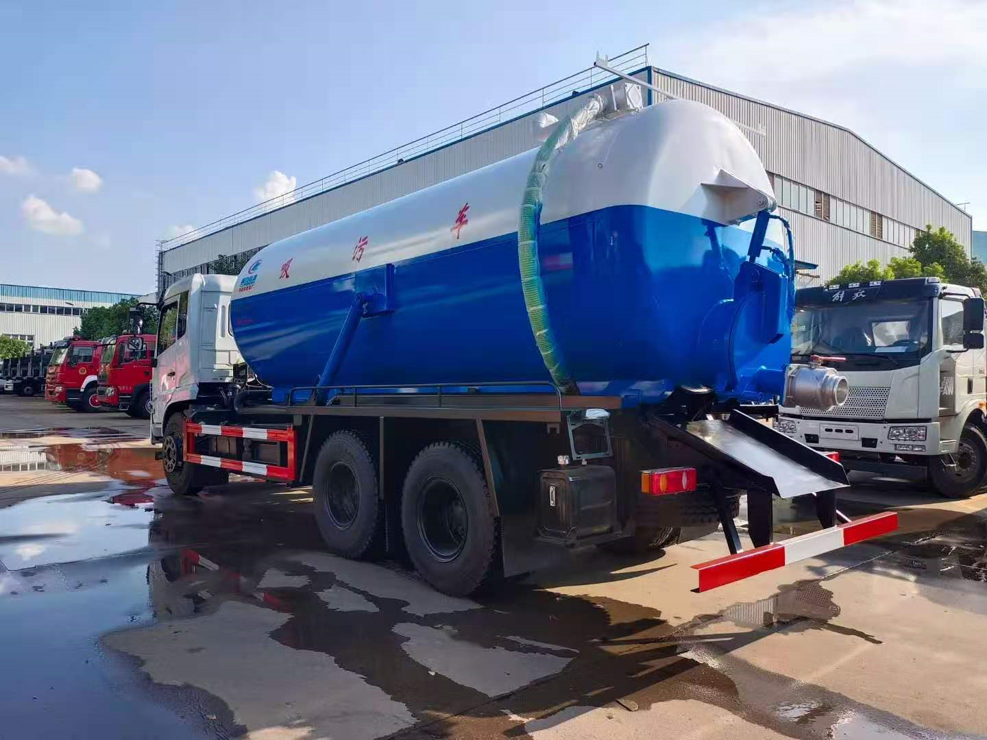 | 上裝配置 | 污罐:Q235武鋼6MM厚碳鋼板,標(biāo)配采用億豐2BE-204水循環(huán)泵,防溢閥,視糞管,配一根8米吸污管,罐體封頭一次壓鑄成型、罐體帶舉升,后蓋為液壓開啟。罐內(nèi)污物可通過后蓋直接傾倒,具有真空度高、噸位大、效率高、用途更廣泛的特點(diǎn)。 | ||